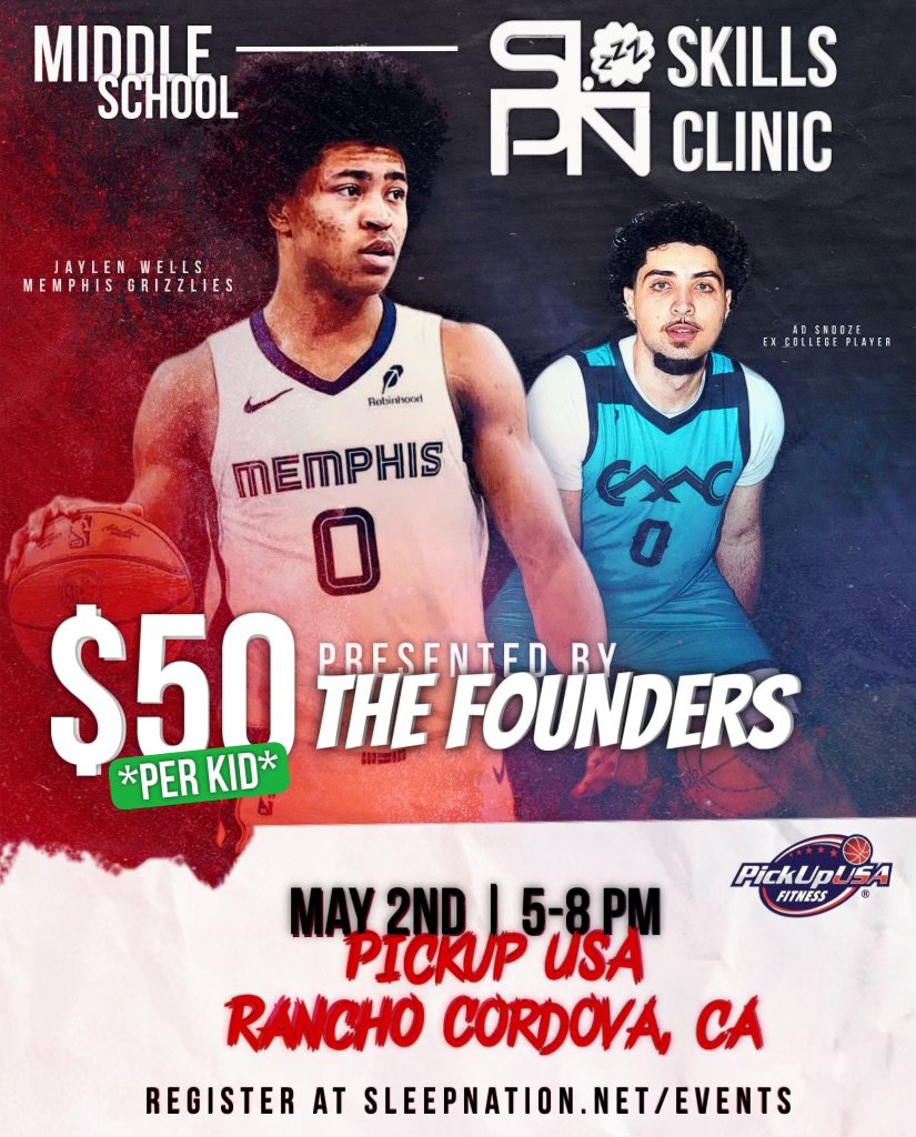 SLEEPNATION is hosting a basketball clinic in Sacramento for middle school boys and girls designed to provide athletes with a structured, high-level training experience focused on skill development, competition, and confidence building. Led by founders Jaylen Wells and Adam Alsamariae, participants will go through drills, situational work, and live play while gaining insight into the habits and mindset required to succeed at the next level.